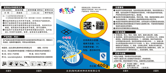 北農(海利)涿州種衣劑有限公司是由中國農業大學與湖南海利化工股份有限公司于19984月合資成立的有限責任公司。公司主要從事懸浮種衣劑、干粉種衣劑、懸浮劑、可濕性粉劑、水乳劑等農藥的研發(fā)、生產和銷售。